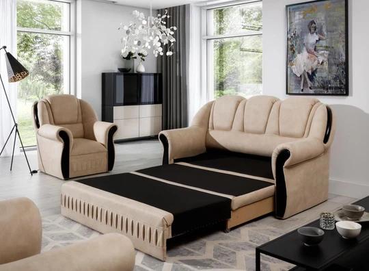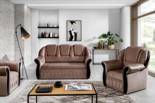 Skládá se z trojpohovky a dvou křesel, která poskytnou skvělou oporu pro vaše unavené tělo. Trojpohovka je rozkládací a nabízí štědrý úložný prostor na vše, co zrovna nemá být na očích. Zadní část pohovky a křesel je čalouněná.