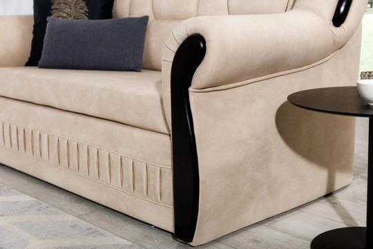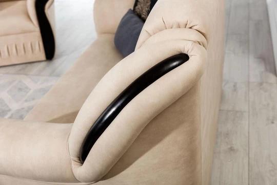 Elegantní sedací soupravu Lada už od pohledu charakterizují zaoblené hrany, masivní zádové opěrky a dřevěné prvky.