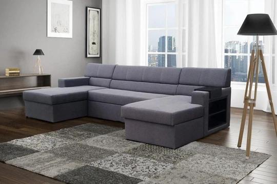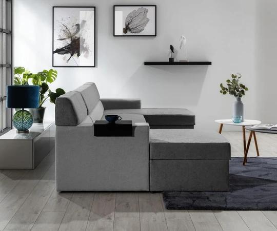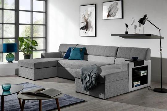 MAX rozkládací sedací souprava ve tvaru U s knihovnou a odkládací policí
