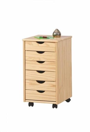 Zásuvkový kontejner je vyrobený z lakovaného borovicového dřeva, které nabízí unikátní přirozený odstín, pružnost, pevnost a výbornou odolnost vůči vlhkému prostředí. Kontejner byl navržen tak, aby byl maximálně funkční a díky kolečkům praktický.