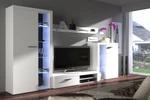 Obývací stěna se skládá z televizního stolku, dvou vitrín a  police. V případě potřeby úložného prostoru navíc lze dokoupit také příslušná komoda. Nábytek je vyrobený z kvalitního lamina, které je velmi odolné vůči mechanickému poškození (př. poškrábání), vlhkosti a nepodléhá času.