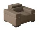 Už na první pohled vás zaujme výrazný charakteristický rys tohoto křesla - polohovatelné záhlavky, které si můžete uzpůsobit k maximálnímu komfortu. Křeslo je vyplněné pružnou PUR pěnou T28, T30, T25, která má výborný odpor proti stlačení a vysokovou tvarovou stálost. Pružiny faliste a bonell pěnu přizpůsobí vašemu tělu a zajišťují její vzdušnost. Nožky soupravy jsou v oblíbeném dekoru wenge.