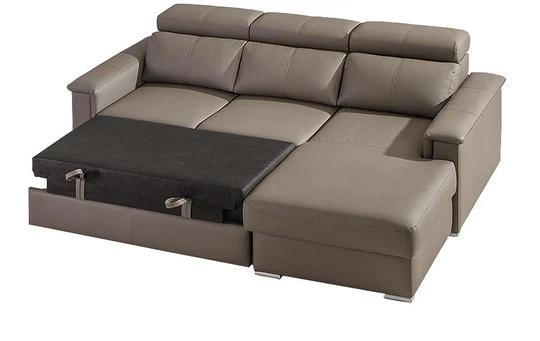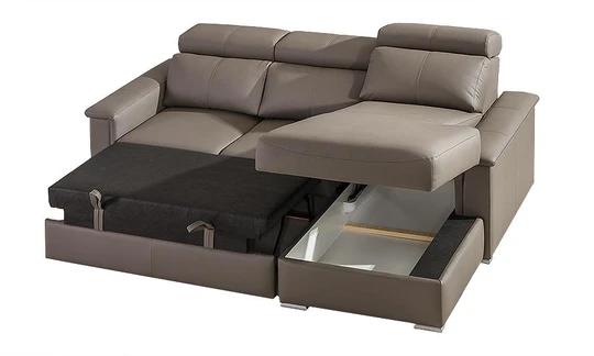 Sedačka má rozkládací funkci, úložný prostor a nastavitelné opěrky hlavy.