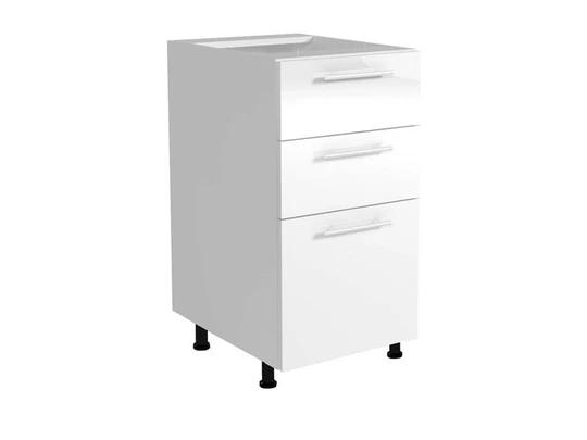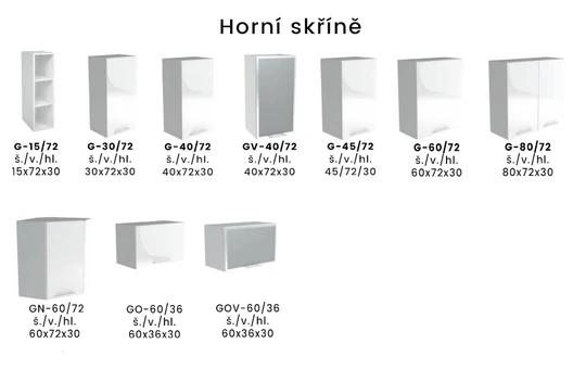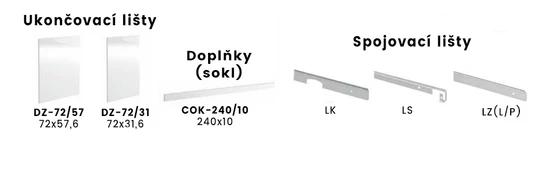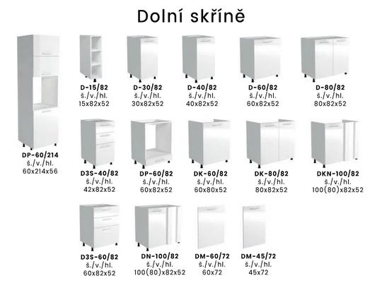 Na výběr je dekor kuchyňské linky - bílý lesk, šedý lesk nebo béžový lesk. Korpus je bílý.
