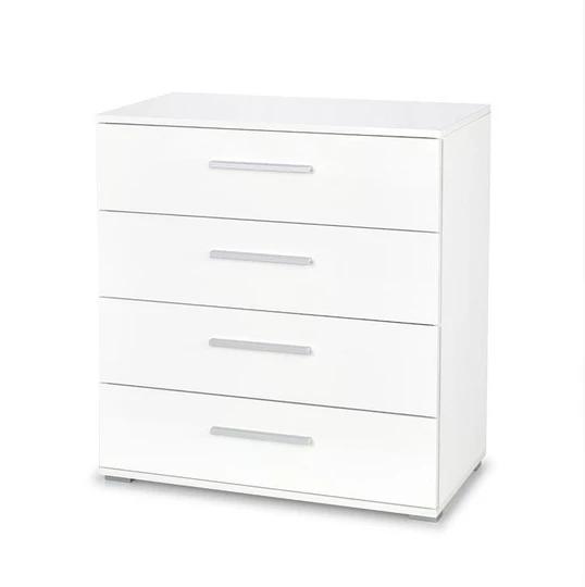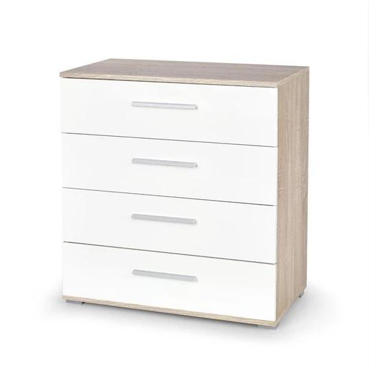Moderní komoda KM-3 z nábytkové kolekce RIVER ve třech atraktivních dekorech - dub sonoma, dub sonoma/bílá a bílá.