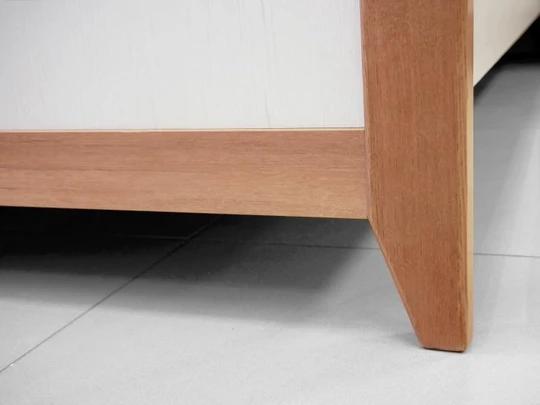 Poste je vyrobená z kvalitní laminované desky LTD, díky kterému je odolná vůči poškrábání, oděrům, blednutí a krátkodobému působení vody. Je opatřené také hranou ABS, která zabraňuje možnému poškození. Nožky jsou vyrobeny z masivního dřeva.