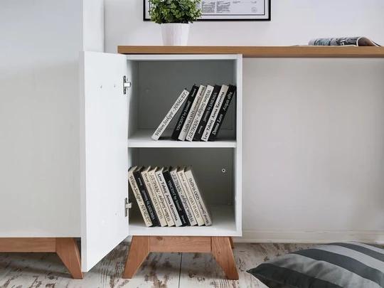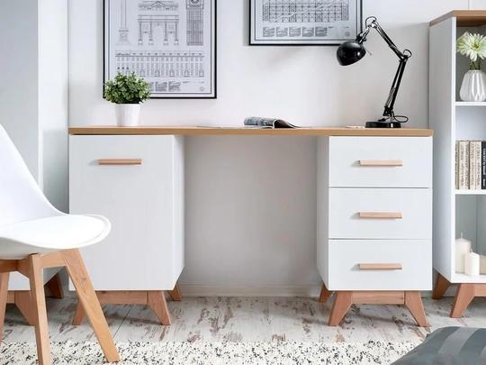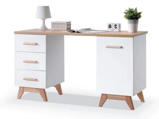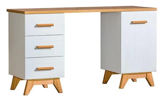 Skandinávský stůl Georgia je vybavený 3 zásuvkami a skříňkou s policí, díky čemuž vám pomůže organizovat drahocenný čas v práci. Pracovní deska nabízí dostatek prostoru k práci či studiu.