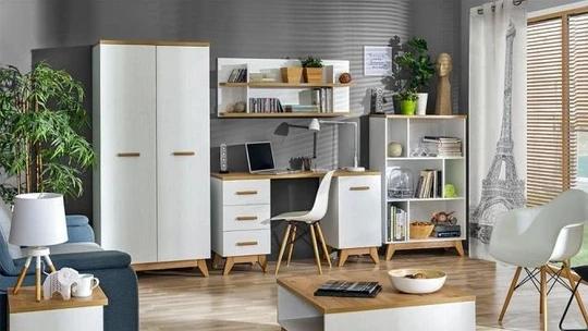 Psací stůl Georgia GE12 představuje ideální spojení moderního skandinávského designu, praktičnosti a komfortu při každodenní práci či studiu. Díky nadčasové kombinaci světlého dekoru borovice Andersen s akcenty dubu Nash působí vzdušně a snadno zapadne do pracovny, studentského pokoje i domácí kanceláře.