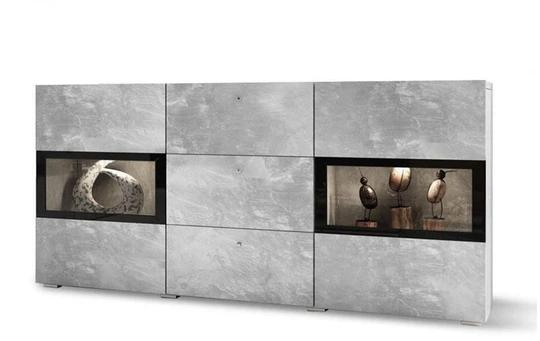 Luxusní komoda ISLAND by ve vaší domácnosti rozhodně neměla chybět. Dostane vás svým moderním a elegantním stylem. Dokonale se hodí do obývacího pokoje, ložnice i pracovny. Disponuje třemi zásuvkami a dvěmi polo prosklenými dvířky, uvnitř nichž je police.