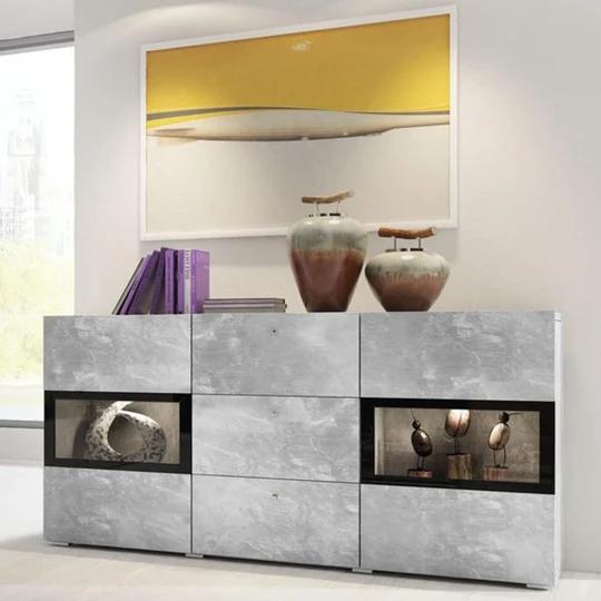 Komoda je vyrobena z kvalitní laminované dřevotřísky a tvrzeného skla. Pro podtrhnutí elegance lze do komody dokoupit i barevné LED osvětlení. Pokud vám nevyhovuje toto barevné provedení, prohlédněte si komodu i v dalších barevných variantách.