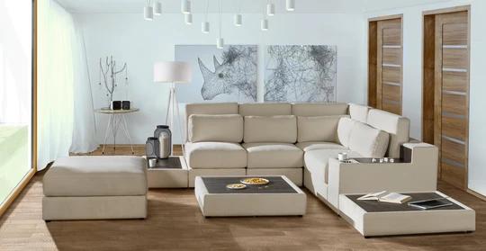 U soupravy je možné měnit druh a barvu látky tak, aby co nejlépe zapadla do vašeho obýváku. Vybrat lze i dekor dřeva boků a svrchních desek u odkládacích prostor - černý, dub salina, borovice andersen, světle šedá, arusha a dub sonoma.