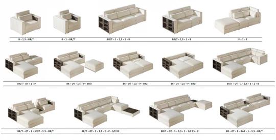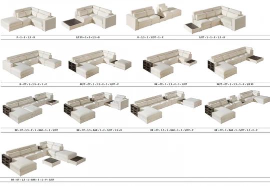 U soupravy je možné měnit druh a barvu látky tak, aby co nejlépe zapadla do vašeho obýváku. Vybrat lze i dekor dřeva boků a svrchních desek u odkládacích prostor - černý, dub salina, borovice andersen, světle šedá, arusha a dub sonoma.