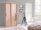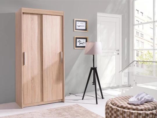 Skříň je dostupná ve dvou barevných variantách – bílá pro moderní a svěží vzhled nebo hnědý dekor dub sonoma, který přináší do interiéru přírodní eleganci. Posuvné dveře umožňují pohodlné otevírání i v menších místnostech, aniž by vyžadovaly další prostor pro manipulaci.