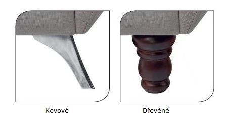 U pohovky je možné si vybrat dekor nožek - kovové nebo dřevěné, viz galerie. Svůj výběr pak napište do poznámky v objednávce.