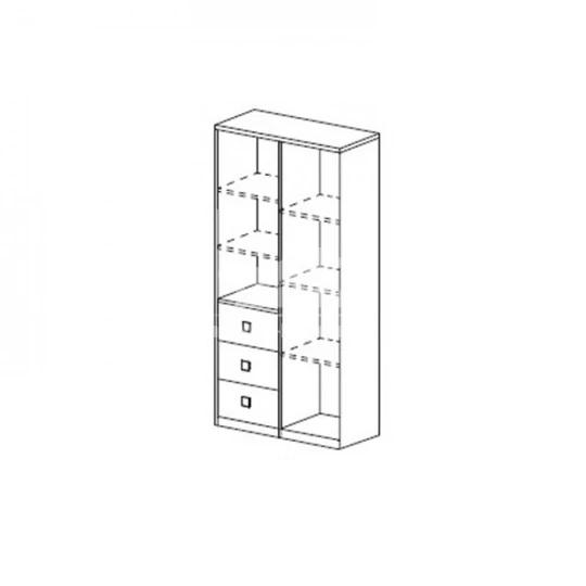 - regál disponuje 3x zásuvkou, 3x otevřené police, 3x uzavřené police