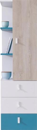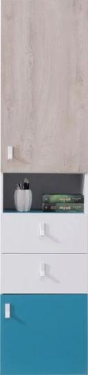 Dobrá modrá v kombinaci s dubovým dekorem, pevným LTD materiálem s jemnými liniemi. To jsou výrazné prvky této dětské sestavy, se kterou snadno vytvoříte pohodou a hravou atmosféru.