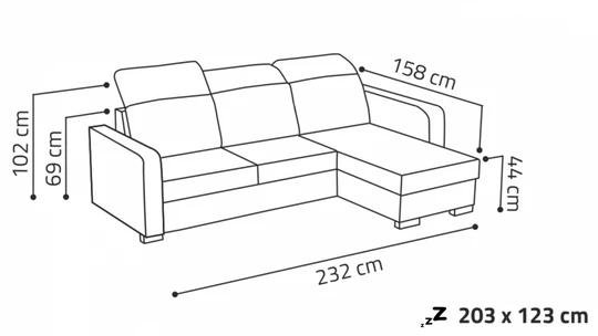 Strana sedačky je univerzální - to znamená, že roh se dá namotnovat na levou i pravou stranu.