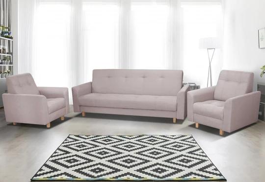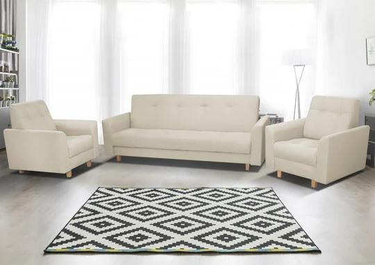 K pohovce lze dokoupit křeslo (85x85 cm, výška 90 cm) a vytvořit si tak sedací soupravu. Nožky jsou dřevěné v dekoru buk.