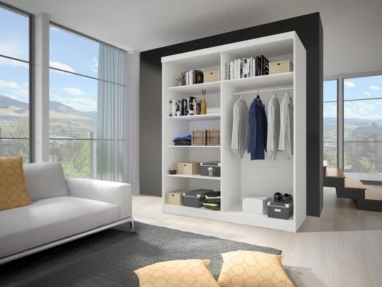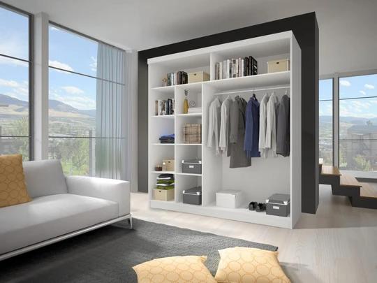 Díky velkému zrcadlu na dveřích opticky zvětší místnost a přinese do ní více světla. Skříň je vybavena šatní tyčí na zavěšení oblečení a praktickými policemi, které zajistí přehledné uspořádání vašeho šatníku.