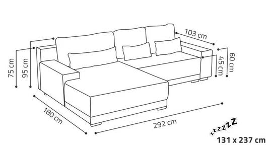Strana sedačky je univerzální - to znamená, že roh se dá namotnovat na levou i pravou stranu.