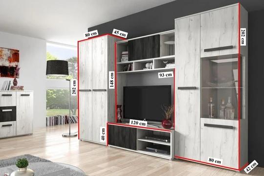 Obývací sestava West si získá srdce především obdivovatelů moderního stylu, kteří si potrpí na spojení elegance s praktičností. Skládá se z televizního stolku, komody a vitríny.