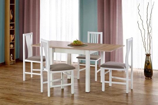 Klasická jídelní židle je vyrobená z bukového dřeva a polykarbonátu.