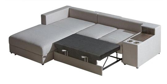 U soupravy je možné měnit druh a barvu látky tak, aby co nejlépe zapadla do vašeho obýváku. Vybrat lze i dekor dřeva boků a svrchních desek u odkládacích prostor - černý, dub salina, borovice andersen, světle šedá, arusha a dub sonoma.