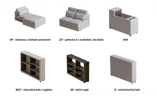 RHINO 2 moderní sedací souprava s knihovnou, možnost sestavení na míru