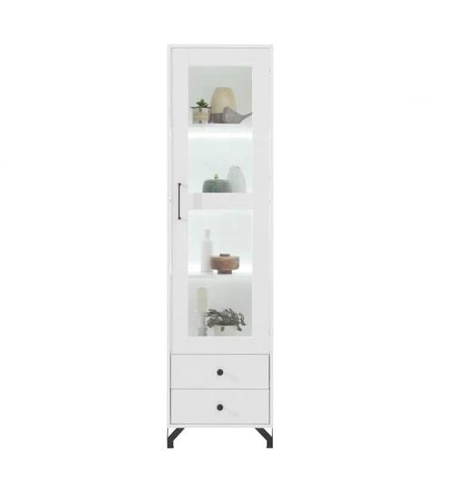 SNOW SN3 bílá prosklená vitrína se zásuvkami