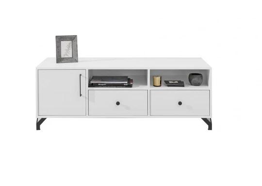 SNOW SN8 bílý TV stolek se zásuvkami a skříňkou