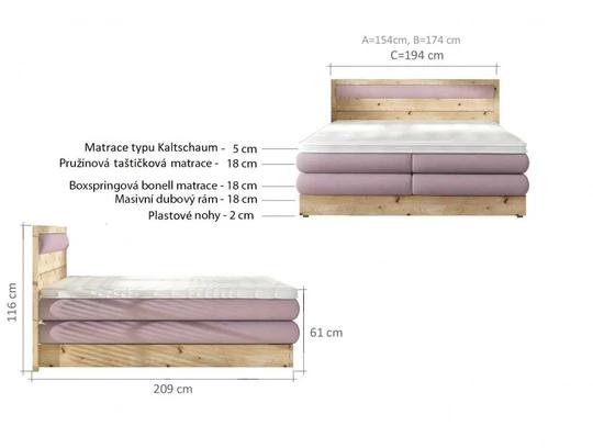 Luxusní kontinentální postel (boxspring) IKARUS 140x200 cm z masivního dubového dřeva.