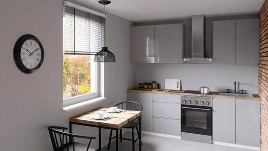 Kuchyně je vyrobená z melaminové desky MDF o síle 16mm, která se vyznačuje svou stabilitou, mechanickou odolností (př. proti poškrábání) a tepelnou odolností. Je také velmi snadná na údržbu a lehce se omývá. Skříňky mají navíc funkci pomalého dovírání a nožky jsou regulovatelné.