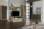 Systém Lamia lze nakoupit jako hotovou sestavu, která obsahuje složení jako na hlavní úvodní fotografii - TELEVIZNÍ STOLEK RTV + POLICE W1 + 2x VITRÍNA W1D + KOMODA K3S v dekoru bílá matkná/dub artisan.