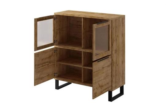 Sestava na pohled působí masivním dojmem, ale je vyrovená z kvalitní laminované desky, která je funkční díky své odolnosti a jednoduché údržbě. Úchytky jsou kovové.
