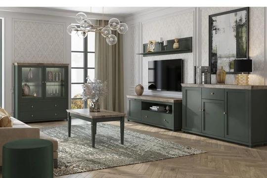 Nábytek ze systému Rennes se vyznačuje klasickým designem, který zapadne do každého interieru. Kombinace tmavé zelené barvy se světlým dřevem jí dodává na eleganci.
