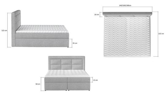 Boxspring postel Elena si vás získá nadčasovým designem a vysokým komfortem. Matrace je vyplněná pružinou bonell, která poskytne vašemu tělu dokonalou oporu a zároveň flexibilitu pro ničim nerušený spánek. Je potažená odnímatelným povlakem. Do jejích dvou úložných prostor snadno schováte peřiny, povlečení či prostěradla.