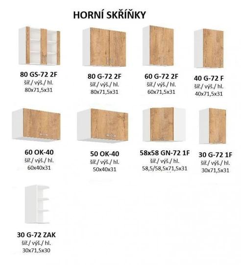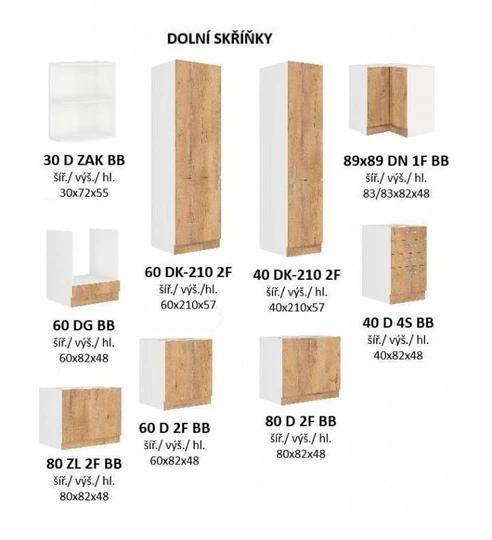 Kuchyně je vyráběna v dekoru bílá/ dub lefkas. Pracovní deska není v ceně, ale je možné jí zakoupit, hrubost 28 mm.