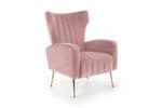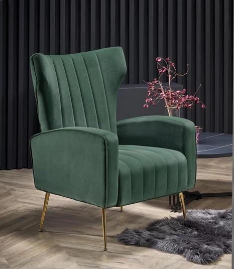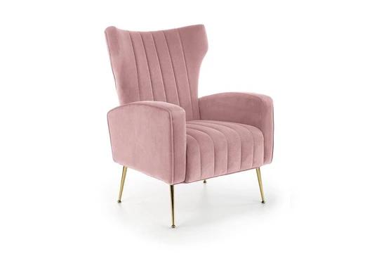 Křeslo má kovové pochromované nožky. Vario je celočalouněné a na výběr je ze 3 barevných variant a to tmavě zelená, růžová a šedá.
