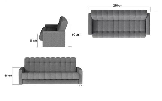 Obohatí každý obývací pokoj či pracovnu a večer může posloužit jako postel pro hosty. Díky jednoduchému systému ji rozložíte dvěma rychlými pohyby. Nechybí ji ani úložný prostor na jakékoliv lůžkoviny či maličkosti. Pohovku však nedoporučujeme ke každodennímu spaní.