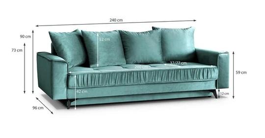 Retro pohovka s funkcí rozkladu a možností následného spánku o ploše 140x200 cm. Součástí pohovky je i úložný prostor.