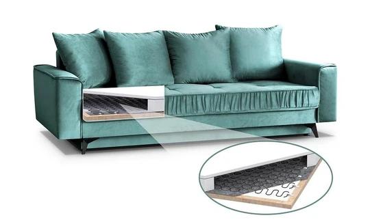 Konstrukce pohovky je tvořená kombinací masivního dřeva a dřevotřísky. Tarent je vyplněná kvalitní PUR pěnou, která se řadí mezi středně měkké pěny se zvýšenou pružností a samozřejmě pružinami bonell. Bonell pružiny patří ke kvalitnějším pružinovým systémům. Jsou řádově spojeny spirálovým drátem, čímž je tvořeno jádro. Při sezení na sedačce tak reaguje téměř celá plocha, neboť se váha přenese postupně na všechny pružin. Jsou velmi pevné a prodyšné.