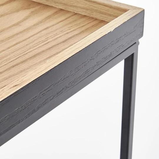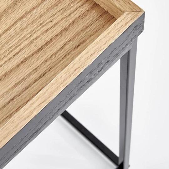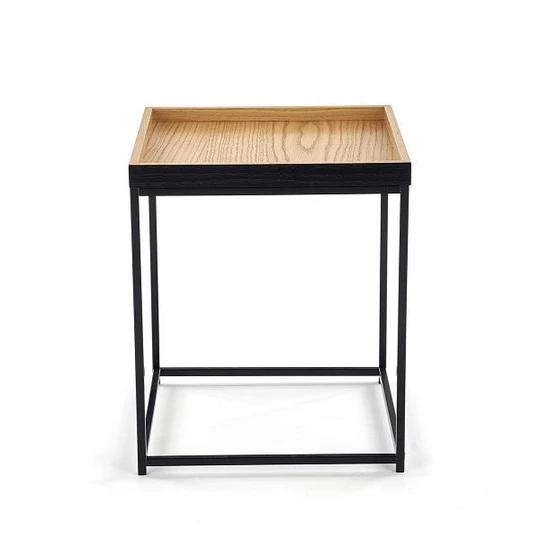 Konferenční stolek YAVA přináší dokonalou kombinaci minimalistického designu a praktického využití. Jeho téměř čtvercový tvar a přírodní dřevěný odstín z něj dělají ideální doplněk do moderních i industriálně laděných interiérů. Odkládací plocha z dýhované MDF desky s vyvýšeným okrajem zajišťuje bezpečí vašich šálků, dekorací či drobného občerstvení.