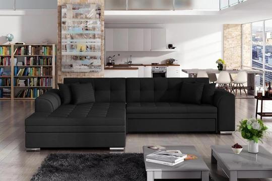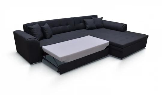 SYDNEY moderní rozkládací rohová sedačka s širokou lenoškou, černá