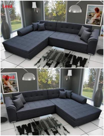 Mezi výhody prostorné černé sedací soupravy nepatří jen moderní design, ale i královský relax. Ve svém repertoáru ukrývá rozkládací funkcí, kterou získáte spací plochu o 237x127 cm. Nemá však úložný prostor.