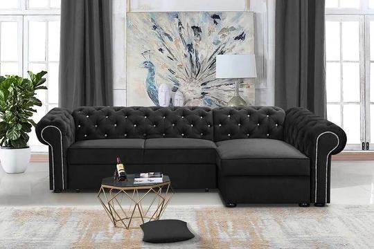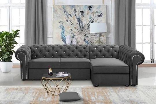 RAMONA XL rozkládací rohová sedačka v chesterfield stylu, látkové knoflíky