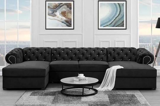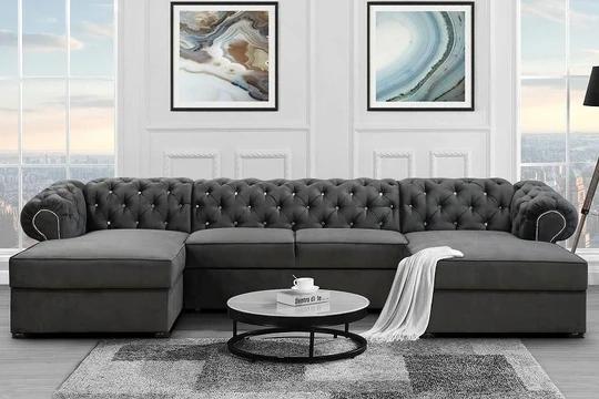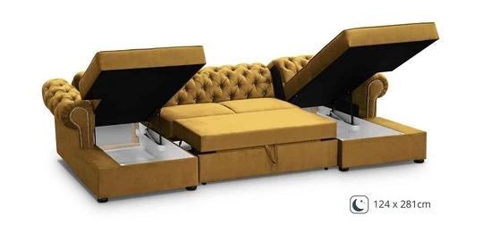 RAMONA U rozkládací sedačka ve tvaru U v chesterfield stylu, látkové knoflíky