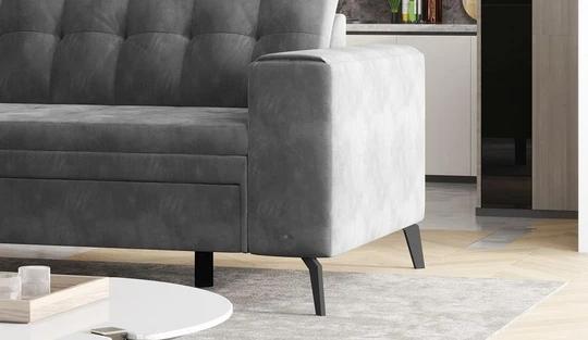 Mezi výhody prostorné sedací soupravy nepatří jen moderní design, ale i královský relax. Ve svém repertoáru ukrývá rozkládací funkcí, kterou získáte spací plochu o 195x125 cm. Nemá však úložný prostor.