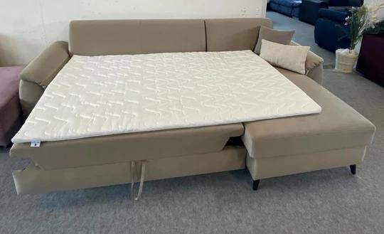 Calais disponuje rozkladem typu "DL", kdy část sedačky se vysune do úrovně délky otomany a zádová část se sklopí směrem dolů. V případě potřeby rozložení sedačky získáváte prostor o rozměru 128x230 cm. Samozřejmostí je úložný prostor o velikosti 127x60x13,5 cm. K sedací soupravě lze dokoupit doplňkovou matraci na rozklad, díky které získáte prostor pro Váš klidný a spokojený spánek.