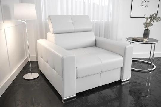 Zadní strana je čalouněná, takže ho můžete umístit do rohu i středu místnosti. Nožky jsou chromované.