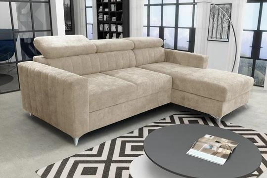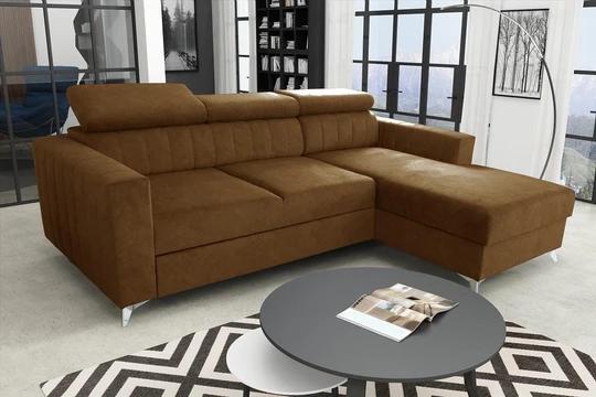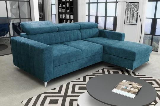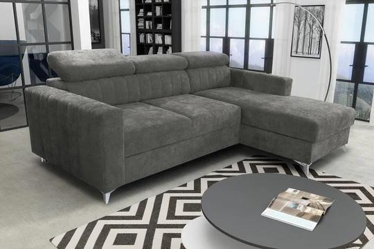 Zadní strana je čalouněná, takže ji můžete umístit do rohu i středu místnosti. Sedačka stojí na vysokých chromovaných nožkách.